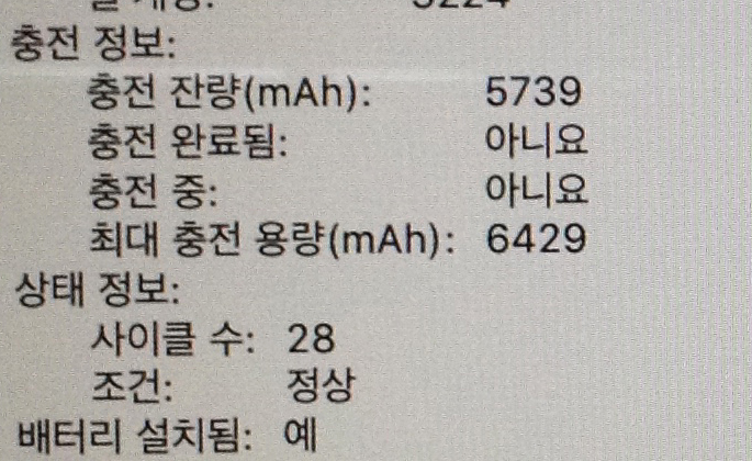 (cpu: i5 램 :8g ssd: 128g 사이클수 : 30)
